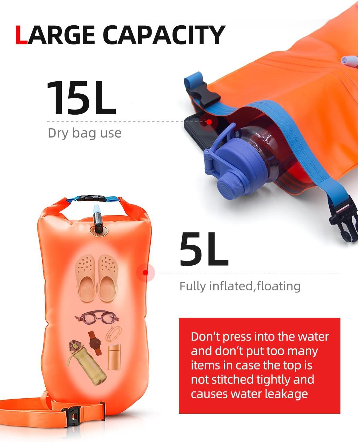 Expanded Storage & Secure Utility: Unlike minimalist buoys, this upgraded version allowing you to securely store phones, keys, energy gels, and emergency cash—ideal for long-distance swims, island crossings, or solo expeditions where access to gear is critical.